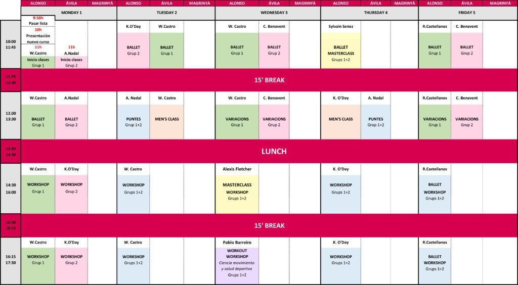 Matí: ballet, puntes, repertori, pas a dos, tècnica de nois, variacions.